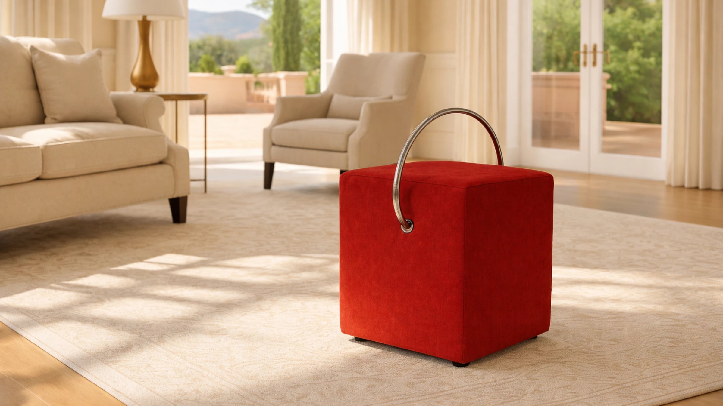 Mit nur 4 kg Gesamtgewicht zählt er zu den leichtesten Polsterhockern am Markt – und lässt sich mühelos dorthin bewegen, wo er gebraucht wird.